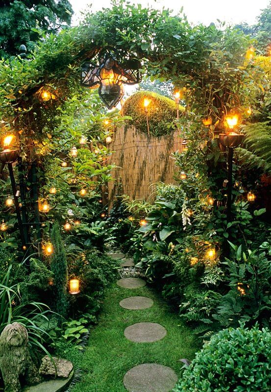 Source: GapphotosThis garden entrance feels like stepping into a storybook. A leafy arch is dressed with glowing lanterns that gently light the path beneath. The soft, warm lights give the space a cozy and peaceful vibe, especially at dusk.