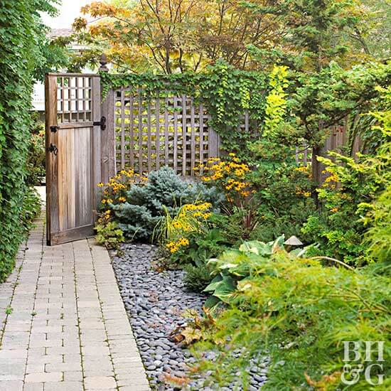 Source: BhgThe wooden gate and trellis give just enough privacy while still feeling open, and the creeping vines make the whole setup feel rooted and lived-in.