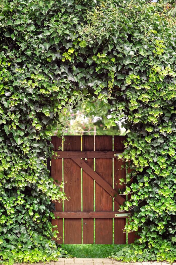 Source: Linda MarroneIf you love a garden that feels like a storybook escape, this ivy-wrapped wooden gate is pure magic. The dense foliage creates a soft arch, naturally framing the rich wood planks like a green curtain.