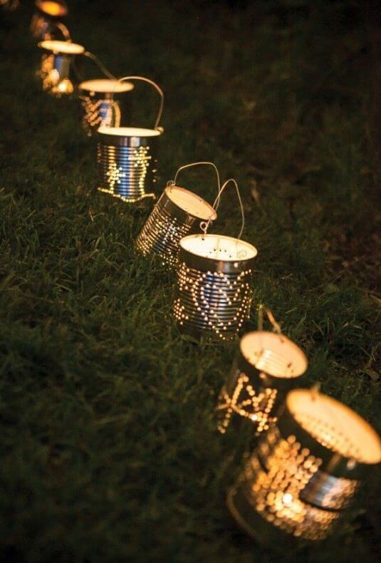 To make your own, freeze water inside the cans first so they don t dent while hammering, then punch holes with a nail and hammer. Add a wire handle if you d like to hang them, and watch your yard sparkle at night.