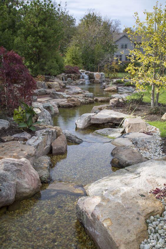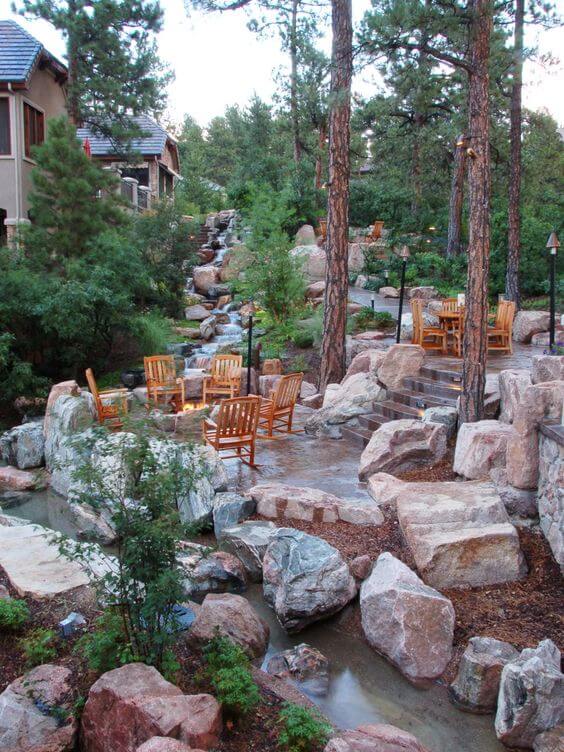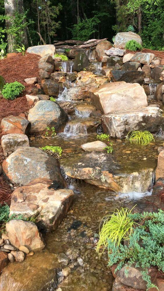 A backyard stream made with natural stones can instantly turn your garden into a peaceful retreat. The flowing water adds movement and sound, creating a calming atmosphere that makes you want to linger outside longer.