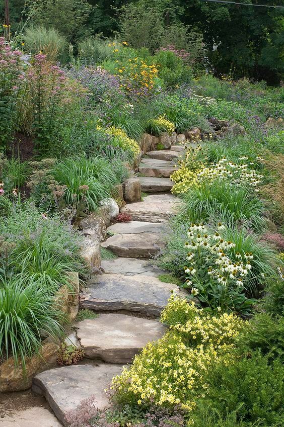 To make your own, start by placing sturdy rocks in staggered rows along the slope, then fill gaps with good soil for planting pockets. Choose plants with different bloom times so your slope stays colorful all season long.