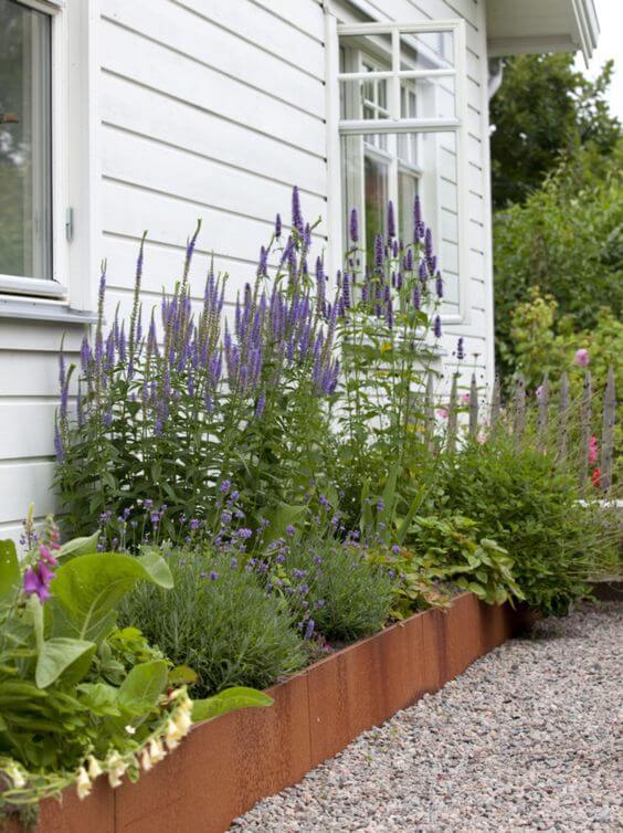 The natural rust finish blends beautifully with the plants, giving off a warm and earthy vibe. To create this look, you can install a corten steel ring or custom-cut panel as a garden divider or entrance.