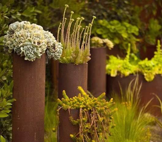 Leftover metal pipes can easily turn into quirky succulent planters. Cut them into different lengths, stand them upright, and fill them with soil and small plants. Their industrial look contrasts nicely with the soft greens of succulents.