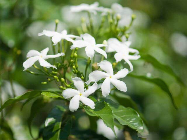 Cold winters actually help this jasmine bloom better the following year. With fragrant white flowers and twining vines, it loves full sun and moist soil.