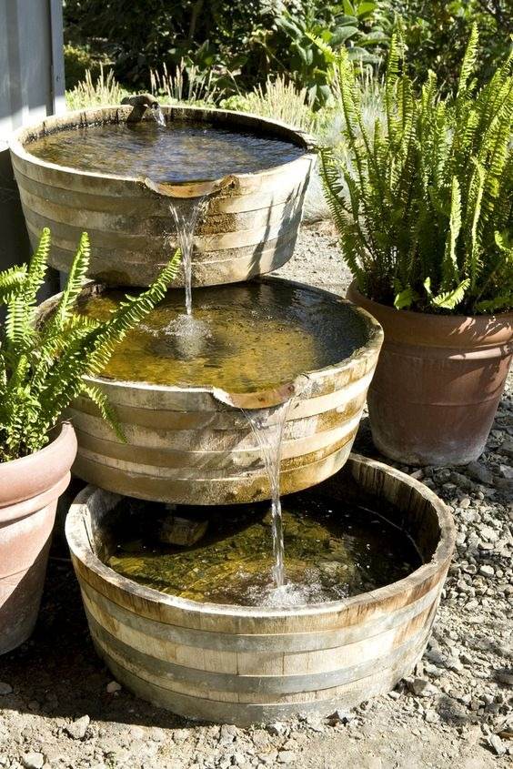 Old metal tubs that do not suit your bathroom style anymore can be transformed into a fountain standing out in the garden. To make a DIY one, you need to drill holes in the bottom of each tub, except for the lowest one.