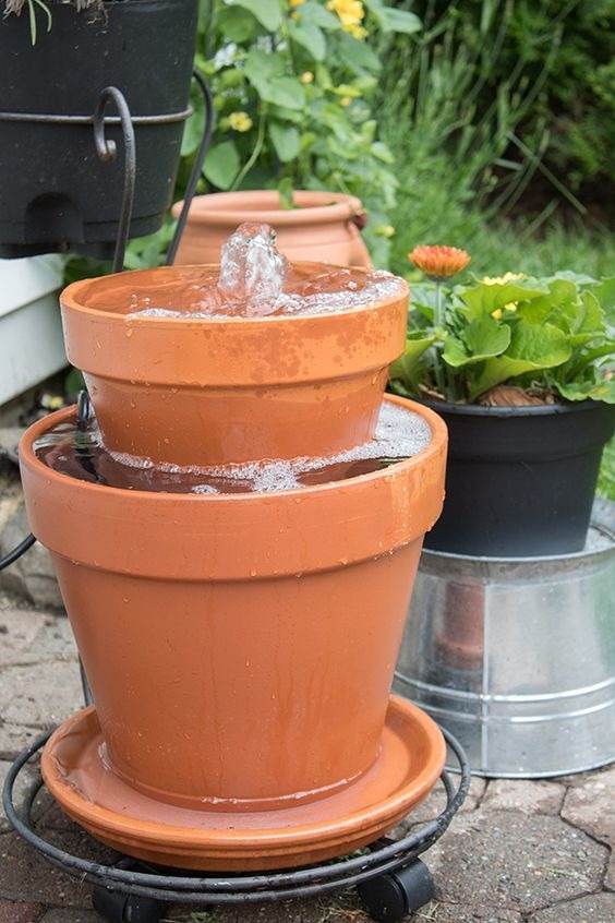 To make a DIY fountain, you need to find some plant pots that fit inside each other. You can use any number of pots, depending on how tall you want your fountain to be.