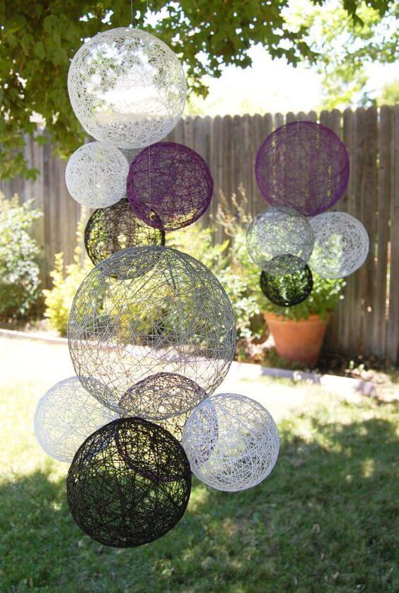 You can paint the dried yarn for a custom palette that matches your outdoor decor. Hang them at varying heights using clear fishing line for a floating effect that instantly brightens up your yard.