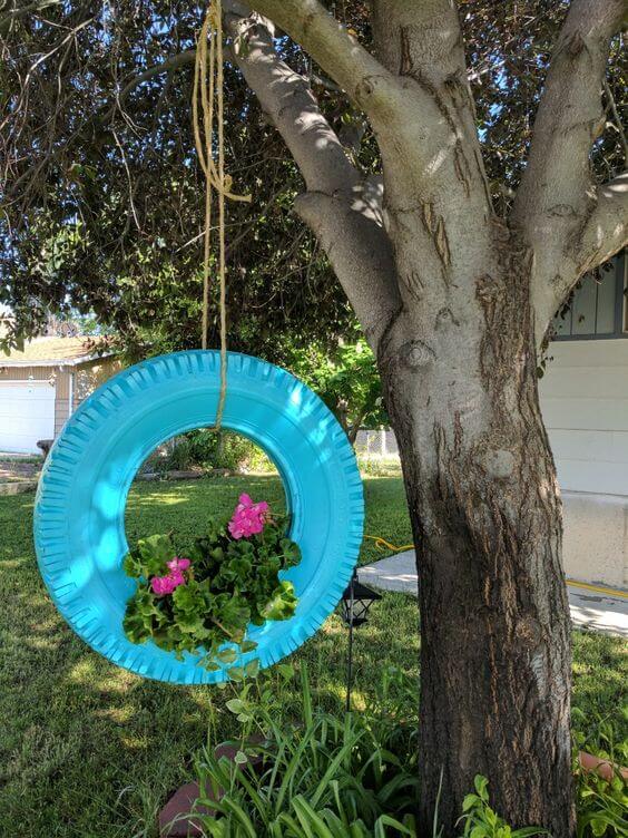 Give an old tire a bright new life by transforming it into a hanging planter full of cheerful blooms. A splash of bold paint, like turquoise or coral, instantly turns it into a statement piece that pops against the greenery.