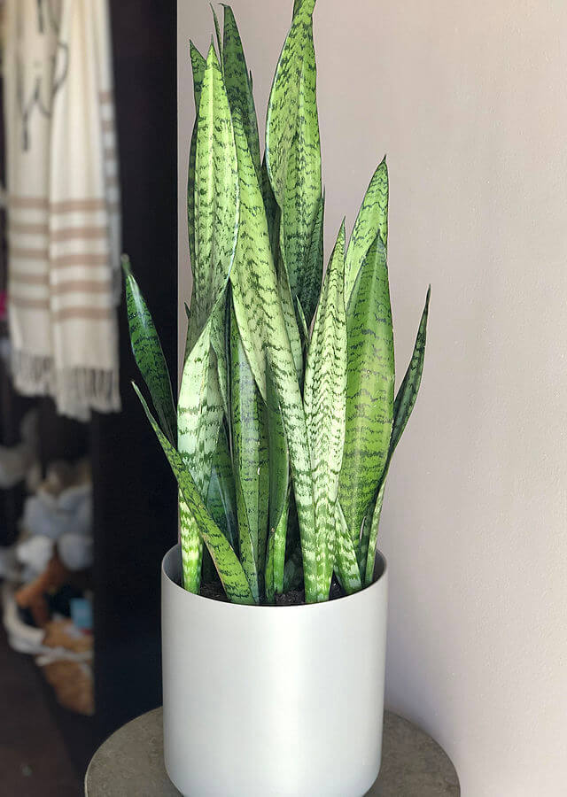 Snake plants can retain water in their leaves so they just require water when the topsoil appears dry, every three weeks or so. They can grow easily in shady spots but the plant may lose its striking color in deep shade.