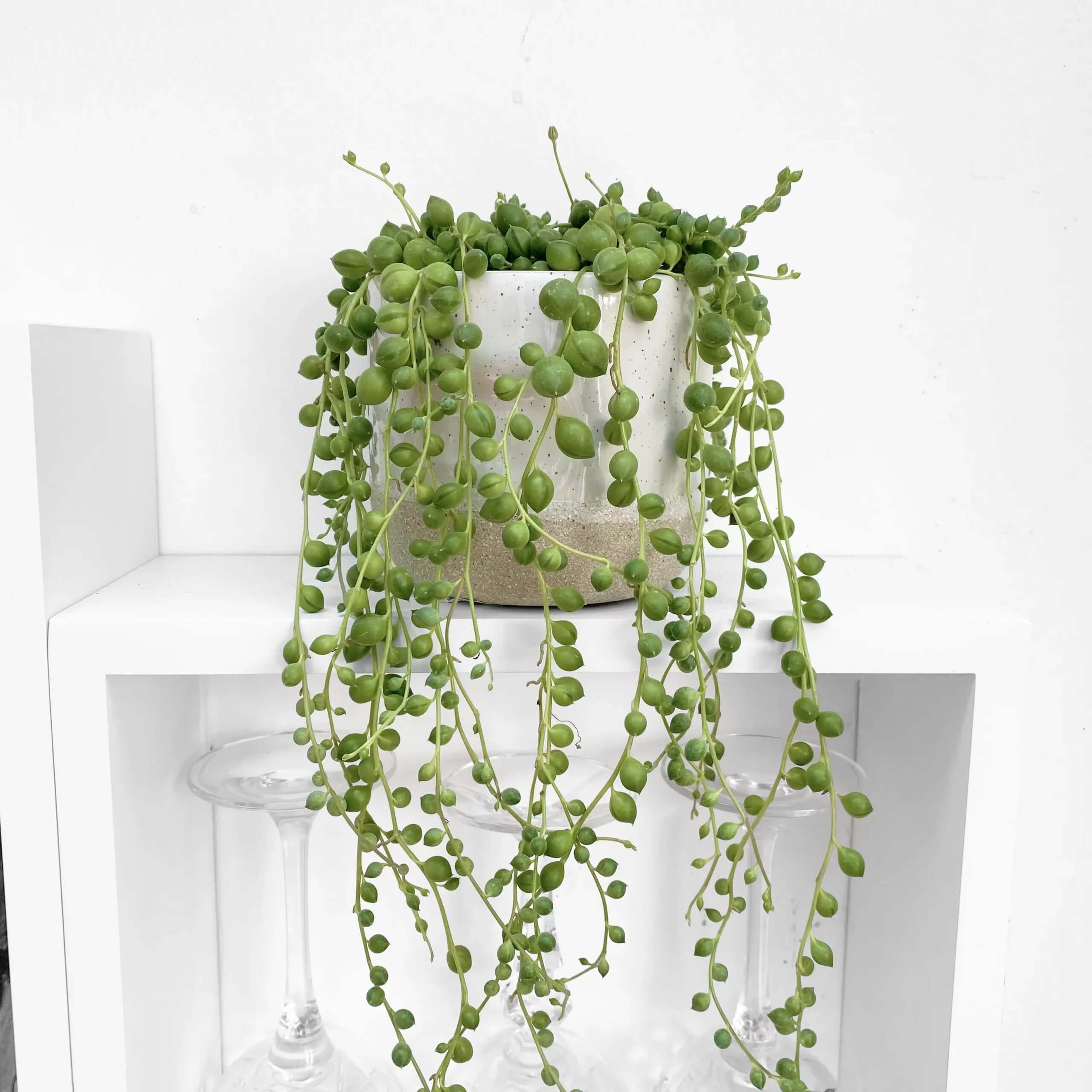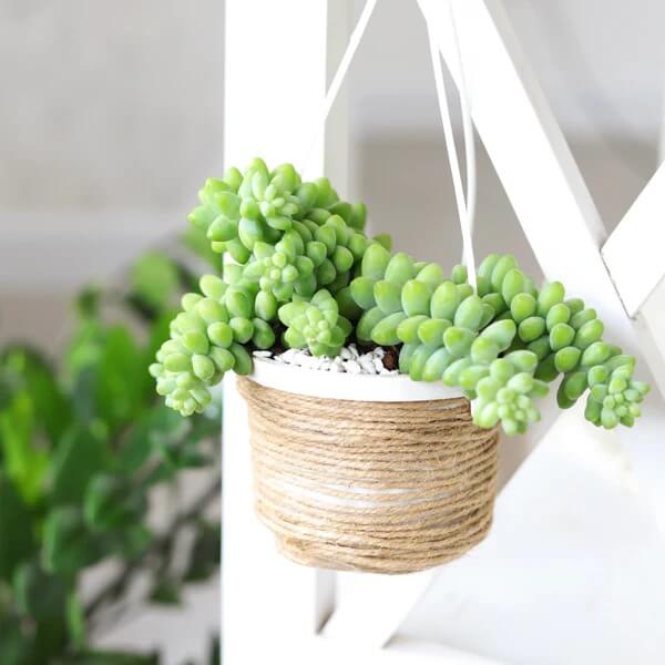The string of pearls is an excellent trailing succulent, looking beautiful on hanging baskets and spillover flower pots. It grows well in bright shades, plant it in a hanging basket to beautify any room.