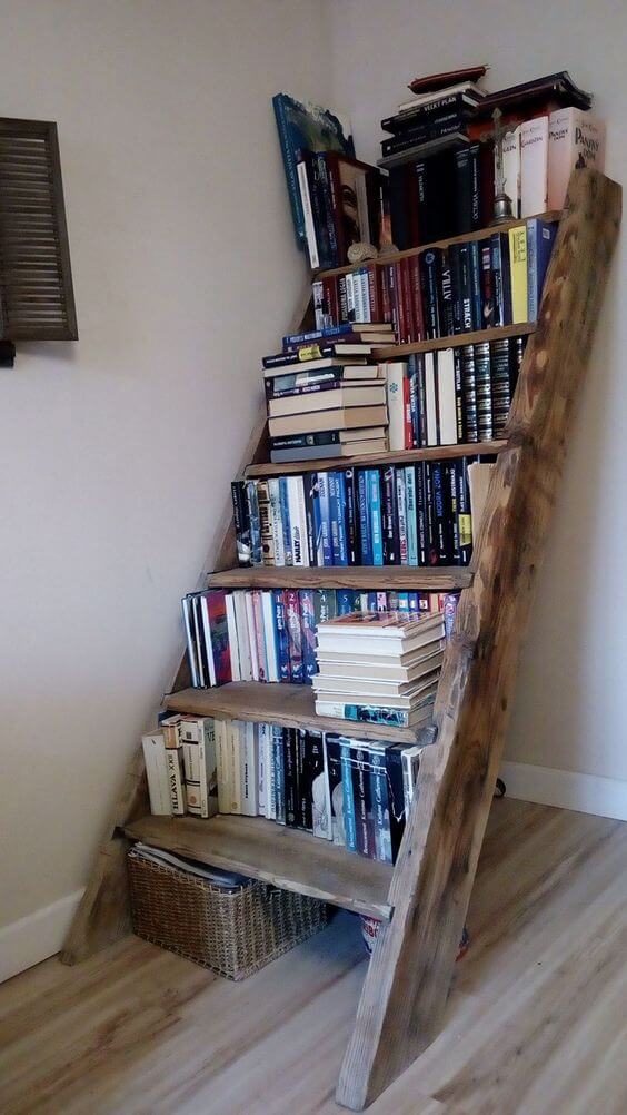 #15 A Rustic Bookshelf Made From Old Ladder