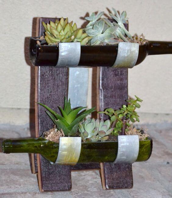 If you re looking for a creative way to showcase succulents, this bottle display does the trick beautifully. By cutting wine bottles lengthwise and securing them to a wooden frame, you create a rustic yet modern planter.