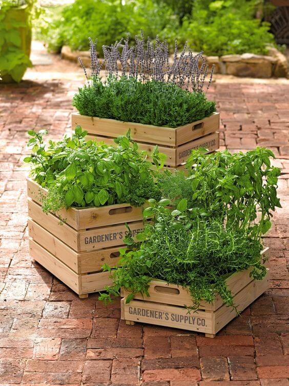 A wooden crate can easily be converted into a portable herb garden. Line it with plastic and add soil before planting herbs of your choice. The handles make it easy to move for sunlight adjustments.