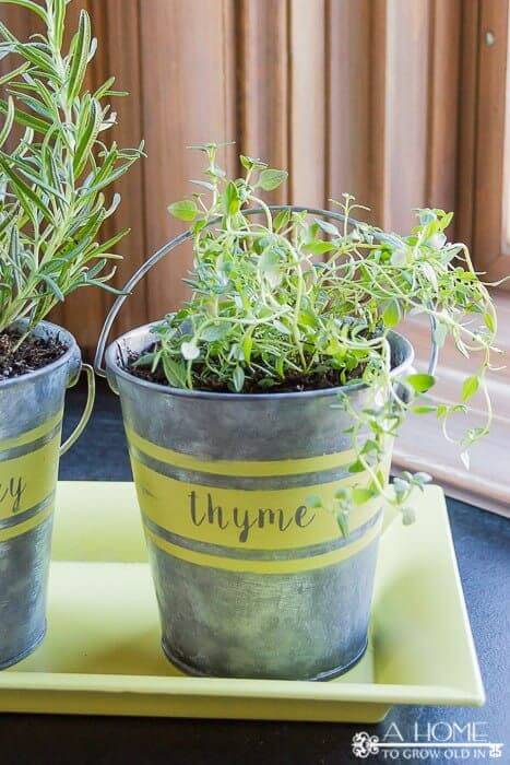Metal or plastic buckets make great herb planters with a rustic touch. Drill holes in the bottom and fill with potting mix. Paint or label them for personality.