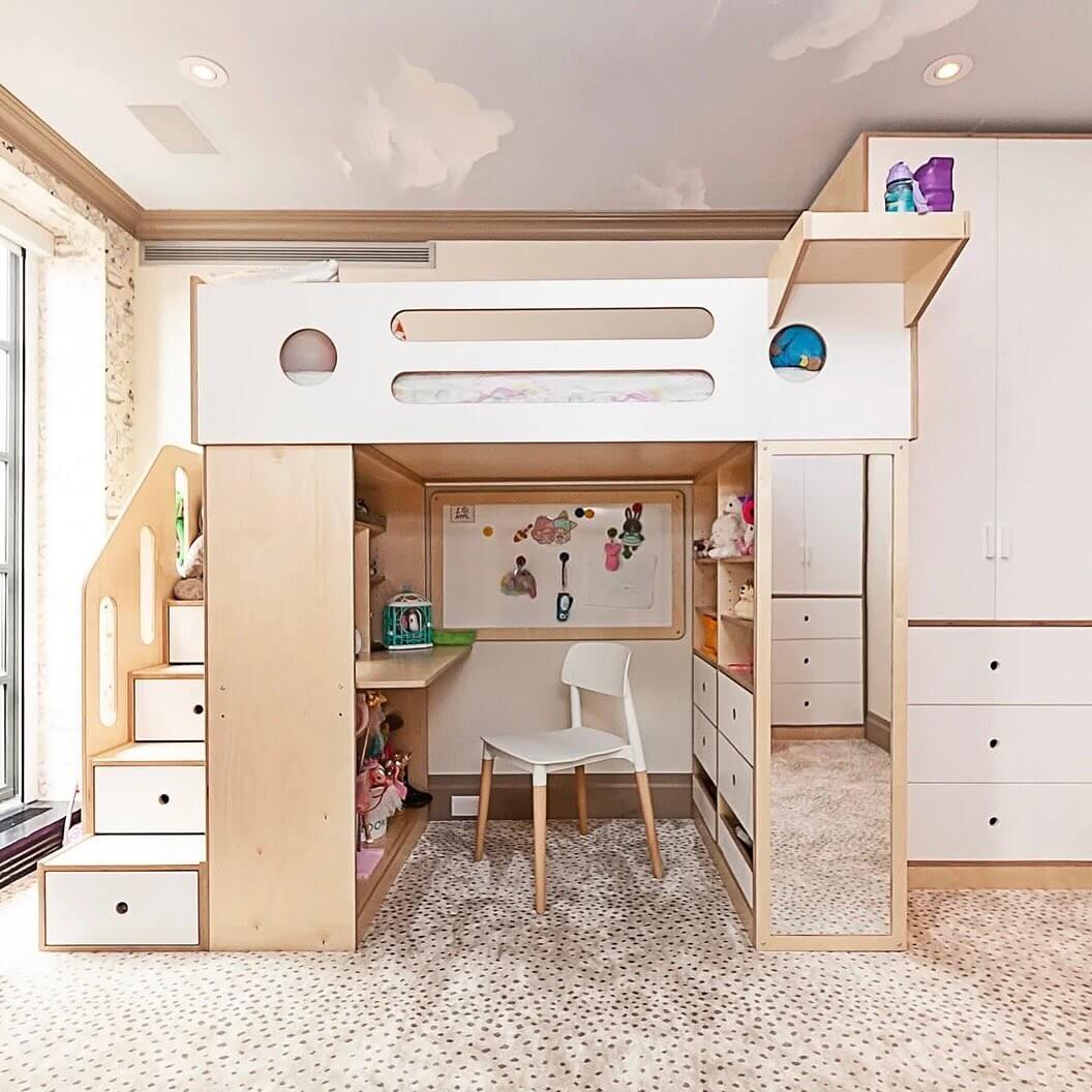 So, why not utilize a stack of beds instead of utilizing the floor space? To do this, you can simply choose the DIY bunk beds that are popular right now, especially if you want to organize the kid’s room in a clever and enjoyable way.