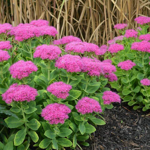 This sedum lives up to its name by putting on a show just as other flowers begin to fade. Its succulent foliage stays tidy, and in late summer, dense pink blooms appear and gradually deepen to a warm, coppery tone.
