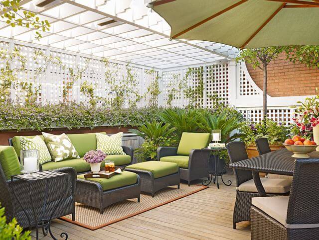 Image Credits: BhgThis patio feels like an outdoor living room wrapped in sunshine and greenery. The lattice walls not only define the space beautifully but also double as trellises for climbing plants, adding softness and charm.