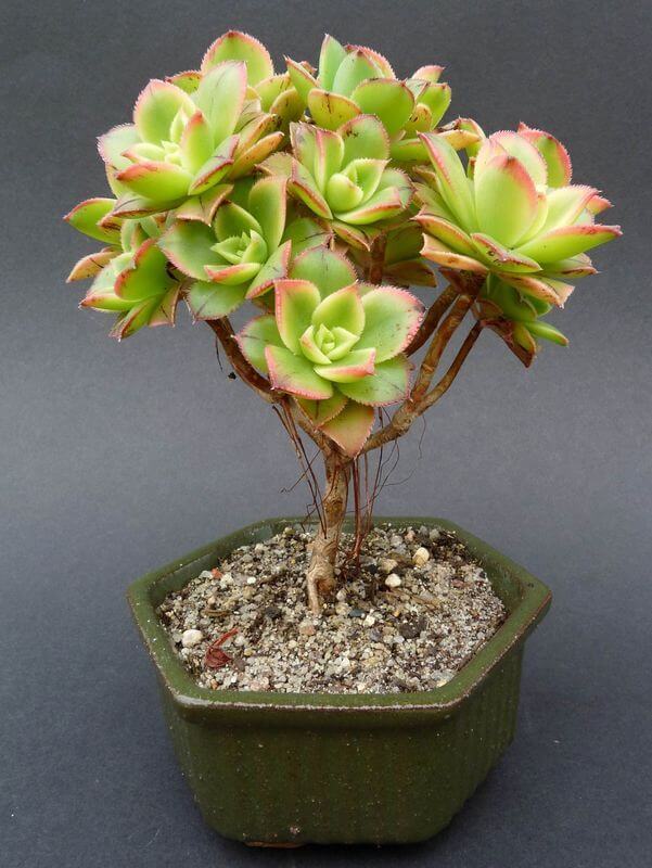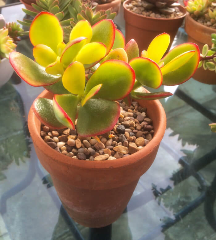 With stacked yellow-green leaves tipped in vibrant red, this plant looks like a living sculpture. As temperatures drop in winter, the red coloring becomes even more dramatic.