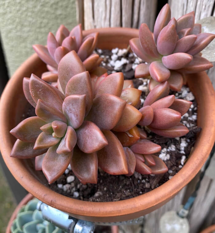 Chubby and charming, Moonstones display silvery blue-green tones that blush pink or lavender in full sun.