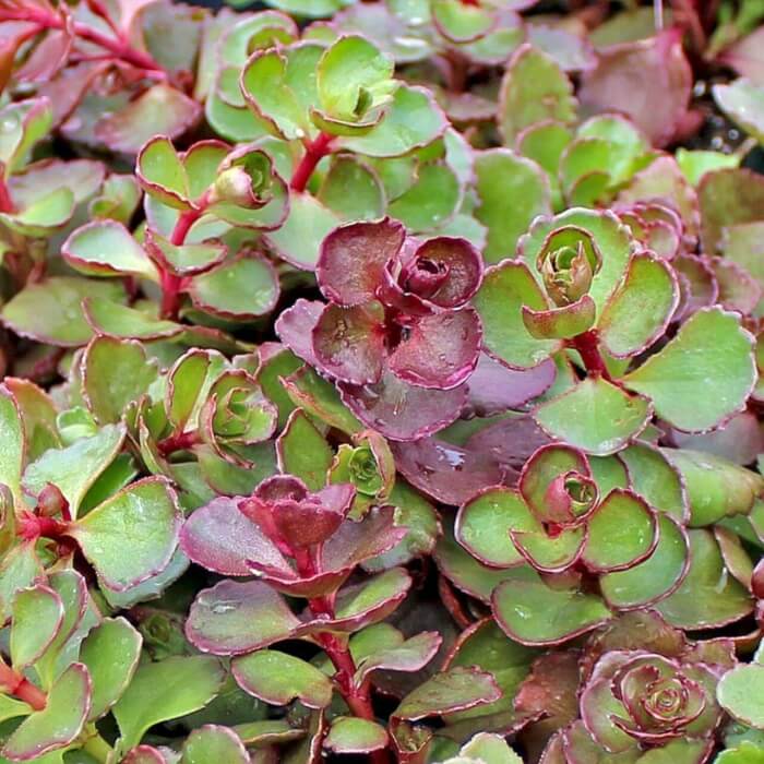 With fat, rounded leaves that resemble candy, this succulent shifts from green to a luscious cherry red in bright sunlight.