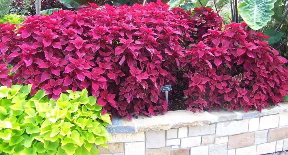 Pinch off the tips to keep the plant bushy and prevent early flowering. Its leaves are the main attraction, creating bold color combinations. In a flower box, coleus pairs beautifully with trailing or flowering plants.