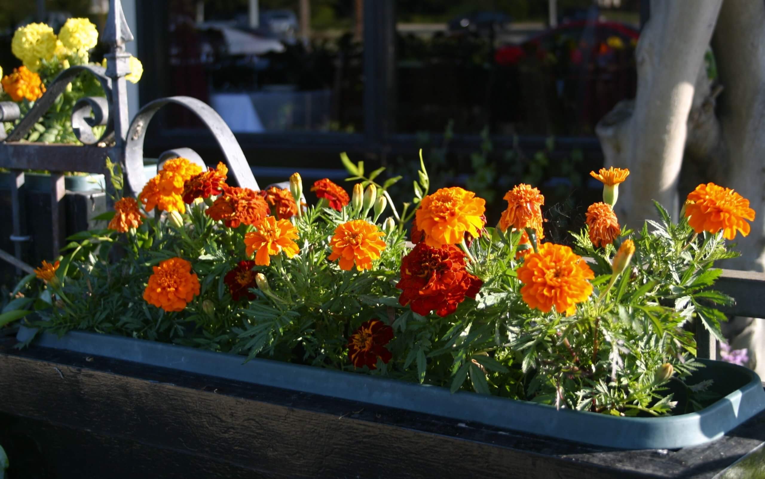 Source: PinterestMarigolds brighten up your boxes with their fiery orange and yellow blooms. They thrive in sunny spots and tolerate heat well. Keep soil evenly moist, but avoid letting it stay wet.