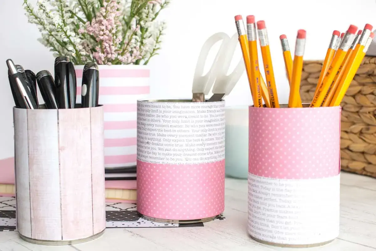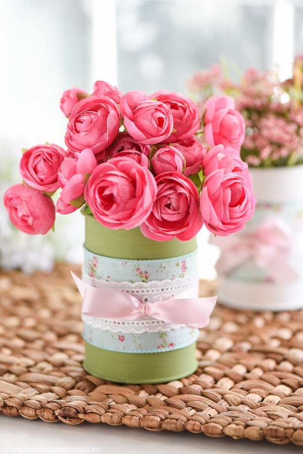 It’s amazing how attractive tin cans can be. It’s my type of makeover when plain old tin cans are cleverly turned into lovely home décor elements! You can make a charming vase, candle holder, or planter with some paint or scrapbook paper.