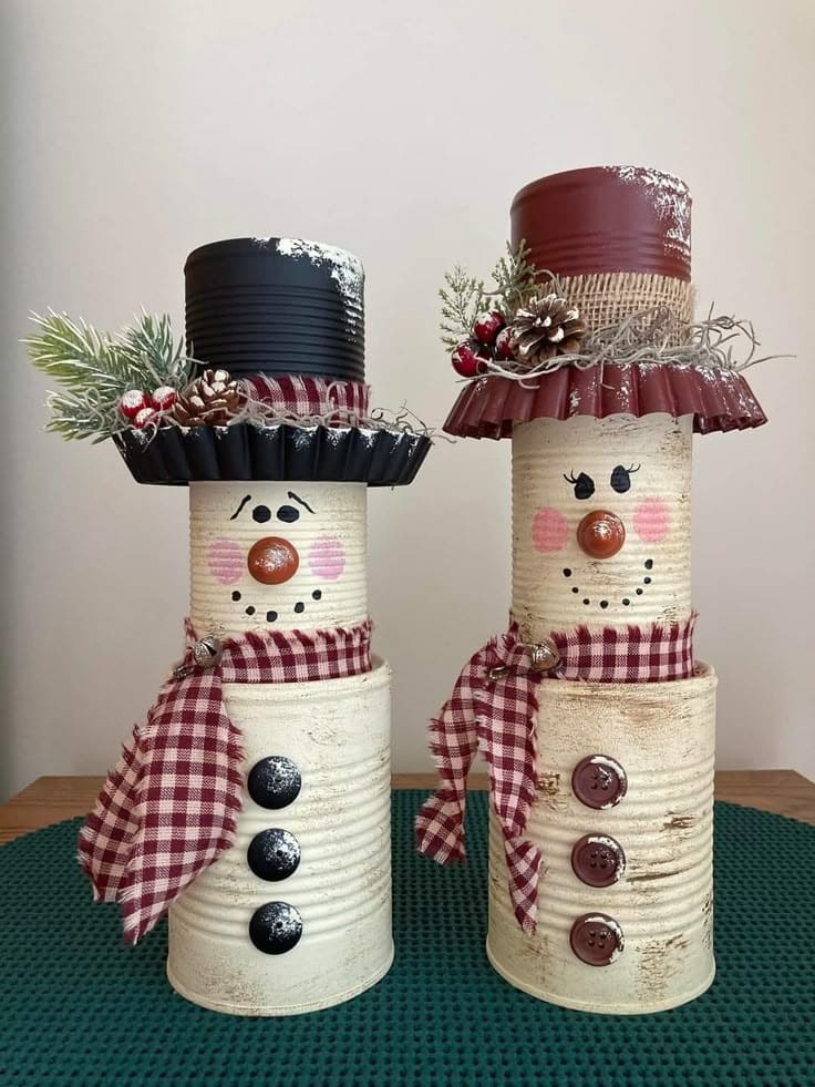 These festive snowmen are made from upcycled tin cans and bring a heartwarming, homespun charm to your winter decorations.
