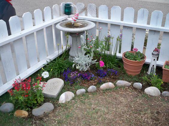 Place a few floating lilies or garden ornaments to add charm. Not only does it look beautiful, but it also invites birds and adds a refreshing sound to your space.