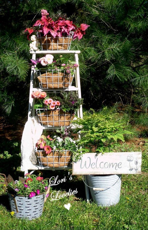 To make your own, repaint an old ladder, secure baskets to each rung, and fill them with seasonal flowers or ferns. Place a cheerful sign nearby, and you ll have a warm, inviting spot that shows off your gardening style beautifully.