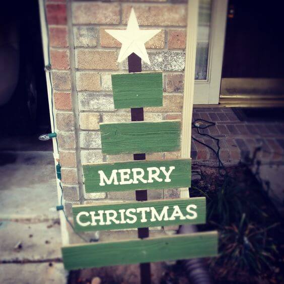 Paint them in festive green, add a white star on top, and personalize with holiday words or messages like Merry Christmas. This project is simple, eye-catching, and perfect for porches or garden corners where you want to add seasonal charm.