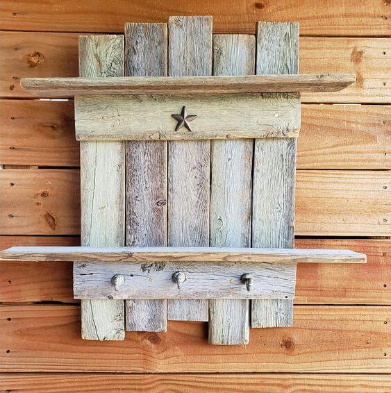 This idea transforms old fence posts into a rustic and highly practical wall rack. By mounting a section of weathered boards on your wall, you instantly get a farmhouse-style backdrop with character and charm.