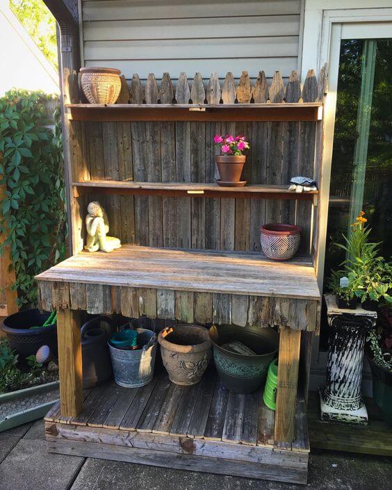 This garden workbench is a perfect example of how old fence boards can be transformed into something practical and charming.