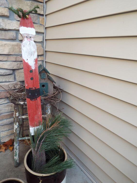 A tall, narrow post works perfectly for Santa s long figure, just paint on his red suit, white beard, rosy cheeks, and a black belt. Adding little details like a sprig of pine or faux snow on his hat gives extra personality.