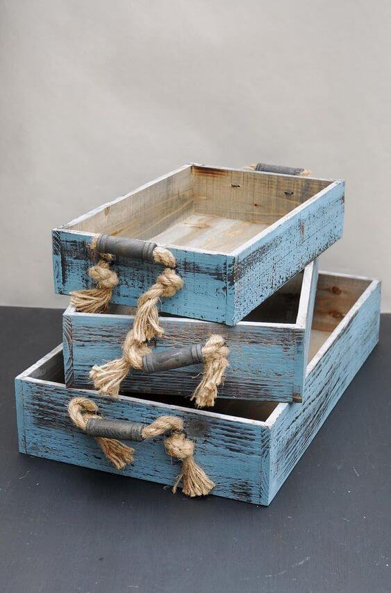 Adding rope handles not only makes carrying easier but also adds a touch of personality. A coat of paint or whitewash gives it a shabby-chic finish, or you can leave it natural for a raw, earthy look.