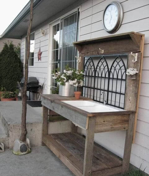 This potting bench breathes new life into an old kitchen sink, transforming it into a gardener s dream station. The sink provides a deep, sturdy workspace that makes potting and watering plants easier while keeping soil contained.