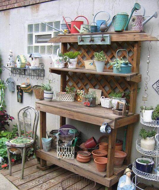 Add hooks for tools and a sturdy work surface for potting. It s a perfect mix of style and practicality, bringing personality to even a small patio corner.