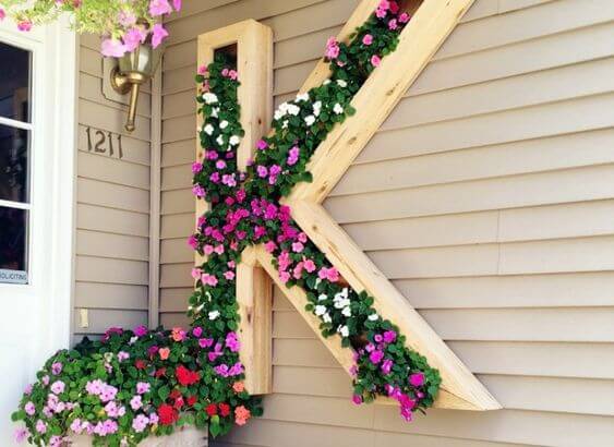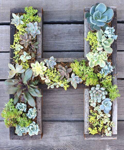 It s like having a living monogram that changes with the seasons. To create your own, cut plywood or pallet boards into letter shapes, then build up the sides with additional wood strips to form a planter box.