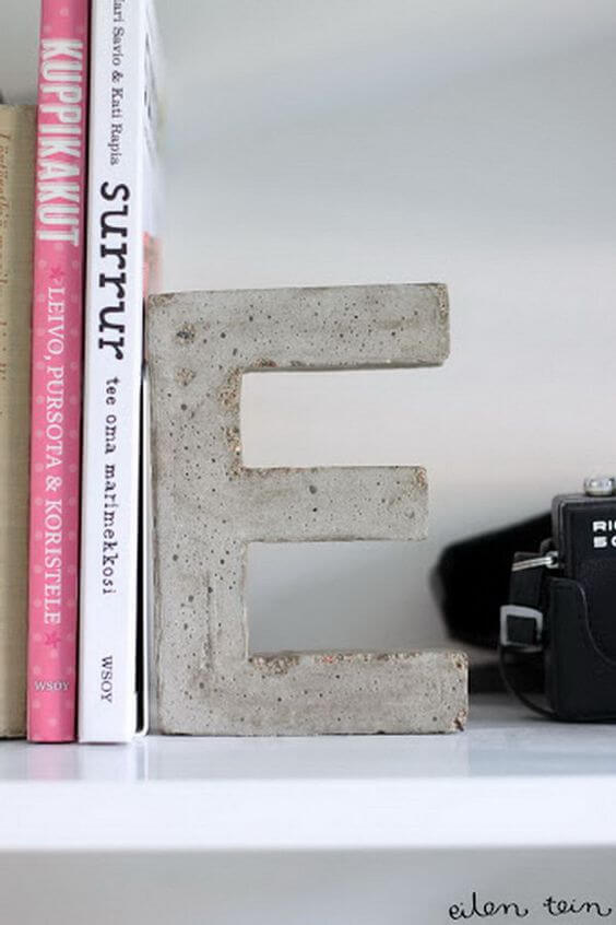 To create one, pour quick-set concrete into a letter mold, tapping gently to release any air bubbles. Let it cure fully before removing the mold, then sand the edges for a smooth finish.