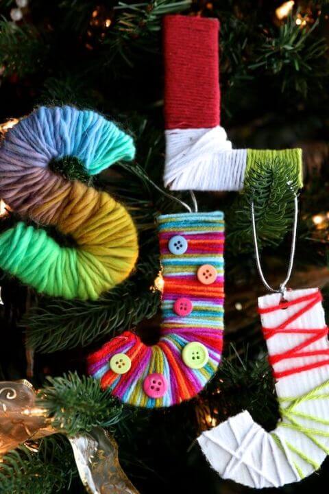 Mixing colors or even layering textures makes them look playful and unique. To make one, cut out a sturdy cardboard letter, secure the end of the yarn with glue, and wrap until it s fully covered.