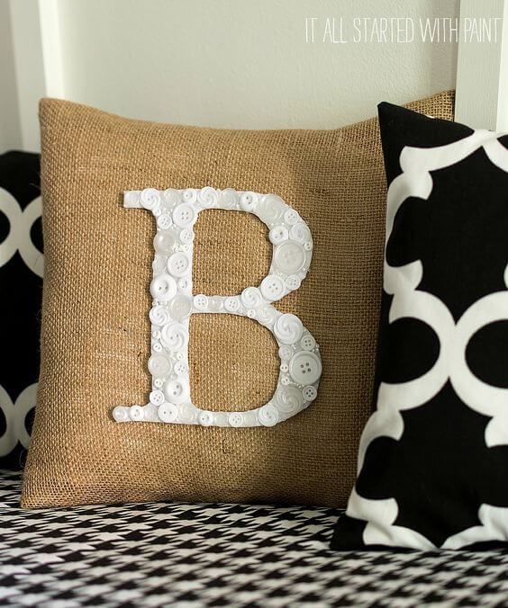 To make one, cut a sturdy letter base from cardboard or wood and glue buttons in a mix of shapes and sizes until the whole surface is covered. You can stick to one color, like all white for a clean look, or go bold with a rainbow mix for playful energy.