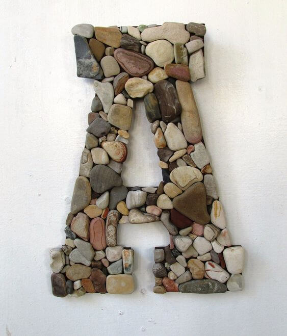 To make one, start with a sturdy wooden or cardboard base cut into the letter of your choice. Arrange pebbles of different sizes before gluing them down, so you get a balanced design.