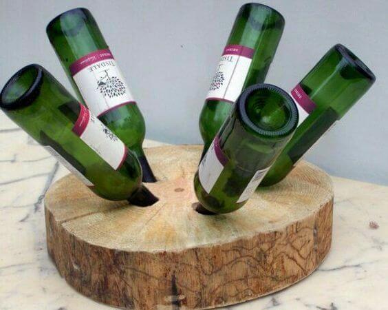 It feels like your wines are growing right out of the woods, making it perfect for a cabin-style or farmhouse setting. To make one, choose a large branch or small tree trunk, cut holes sized to fit the necks of bottles, and sand the surface smooth.