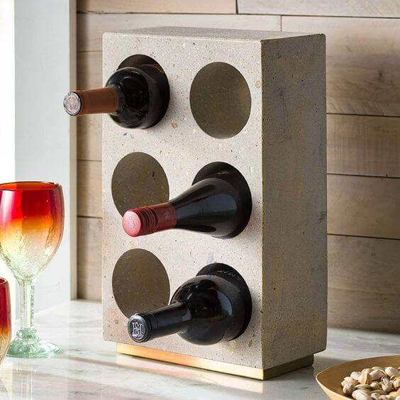 This concrete wine rack is the perfect blend of industrial style and functionality. Its solid structure makes it durable, while the clean circular cutouts hold bottles securely in place.