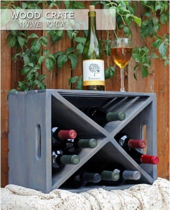 This wood crate wine rack is a simple yet stylish way to keep your bottles neatly organized. By dividing the crate with X-shaped wooden inserts, you instantly create sections that hold multiple bottles securely in place.