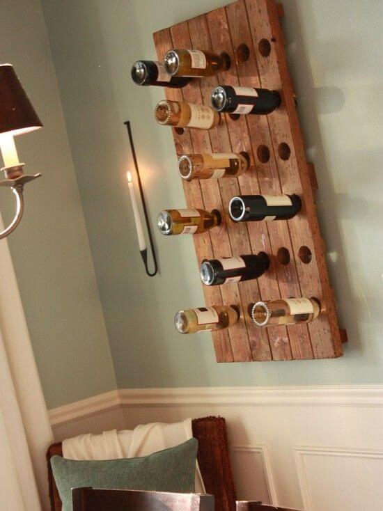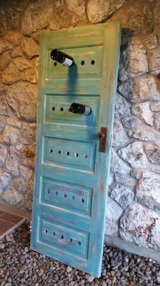 This creative wine rack proves that even an old door can be given a brand-new purpose. With a few drilled holes, the panels of the door are transformed into bottle holders that keep your wines angled just right.