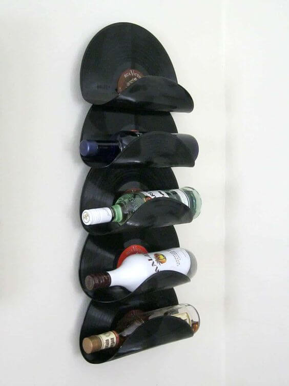 This wine rack is a brilliant way to give old vinyl records a second life. By heating and bending the records, they are shaped into cradles that perfectly hold bottles on the wall.
