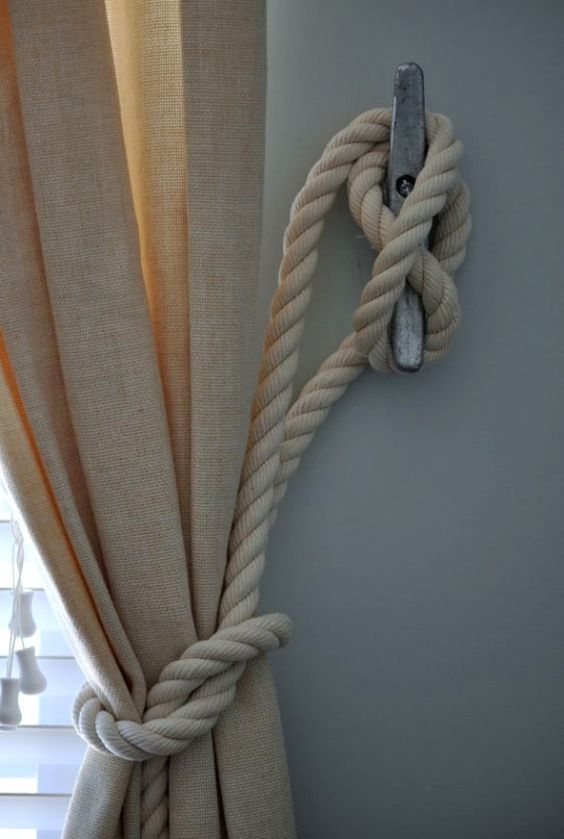 This rope tie-back is a clever way to add a nautical touch to your curtains. The thick rope loops naturally around the fabric and hooks onto a wall cleat, just like one you d see on a dock.