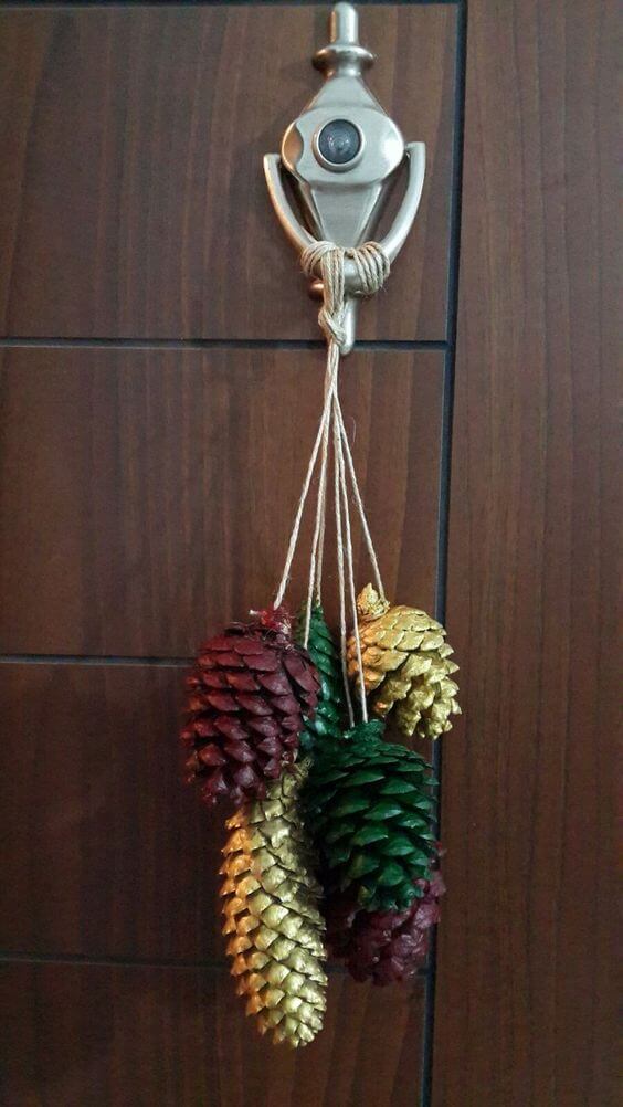 Here s a festive way to bring nature indoors with just a bit of rope and pinecones. These painted pinecones, tied together with twine, make a simple yet eye-catching decoration for your front door or even as a wall hanging.